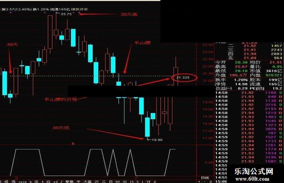 选股就不用说了,放预警里,现价在半山腰正负5%区间预警。