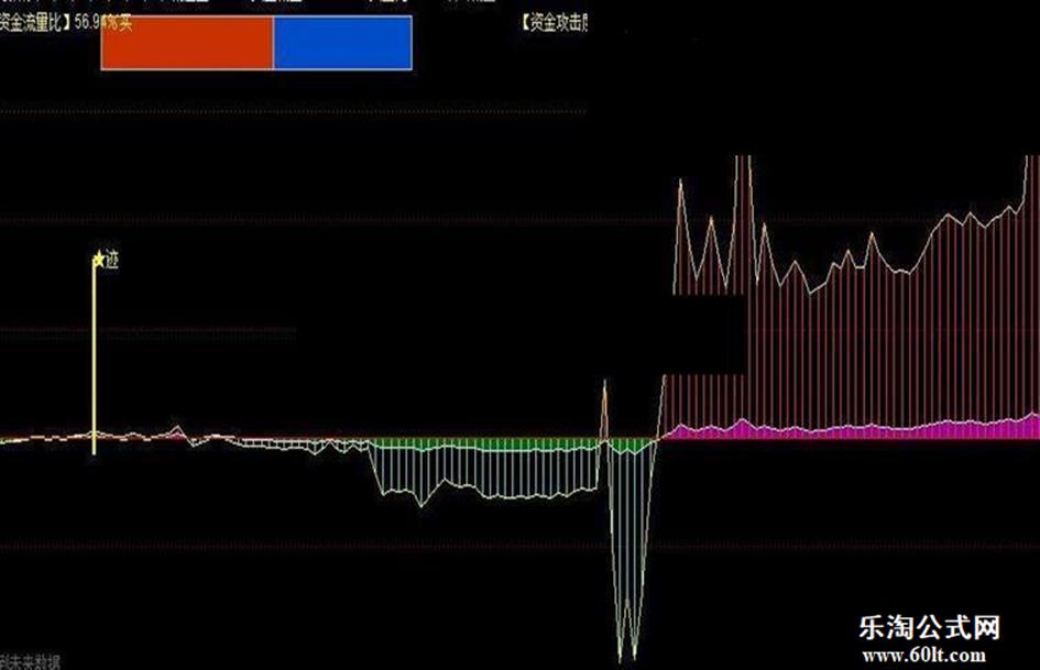 STICKLINE(资金流量B<0,资金流量B,0,1,0),COLORFF0000;}