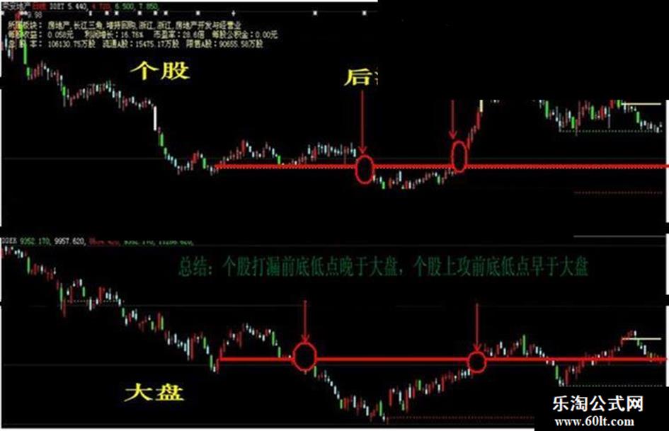 原帖也没有文字说明,大概意思我猜想。个股参考大盘,个股比大盘迟跌破支撑但又早于大盘突破这个压力线。预示个股强势。