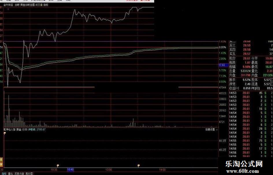 看到很多理想论坛的朋友喜欢利用集合竞价抓涨停,今天也有幸发表一下意见并发出自己的独创指标”乾坤仙人指“。集合竞价关键是量,然后选高开的,为什么选高开,因为低开的你搞不懂后面怎么走,而高开几率大一些而已,但是量不能用成交量来衡量,这样并不科学,最好用资金额,这是实实在在的钱的标准,因为现手1000股的2元股和1000股的20元股,资金量是不一样的。