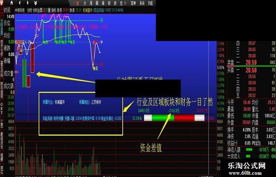 分时主图舍我其谁,资金,支撑,压力,财务,板块,机构买入力度,分时K线显示都一目了然。