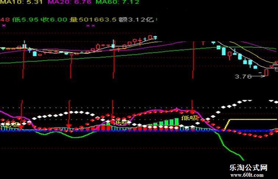 DRAWTEXT(REF(火,3)>0 AND REF(火,2)>0 AND REF(火,1)>0 AND 火=0 AND REF(火,1)>山,REF(火,1),'低吸'),COLORYELLOW , ;