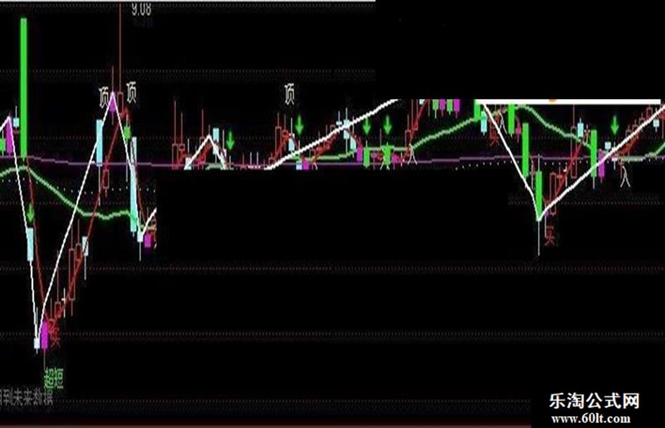 DRAWTEXT(CROSS(工作线,趋势线)AND J<55,LOW,'入')COLORWHITE;