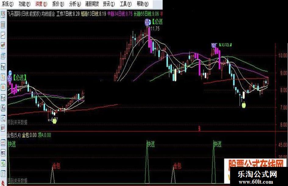 金包: IF(TROUGHBARS(3,15,1)=0 AND HIGH>LOW+0.01,20,0),COLORYELLOW ,LINETHICK1 ;