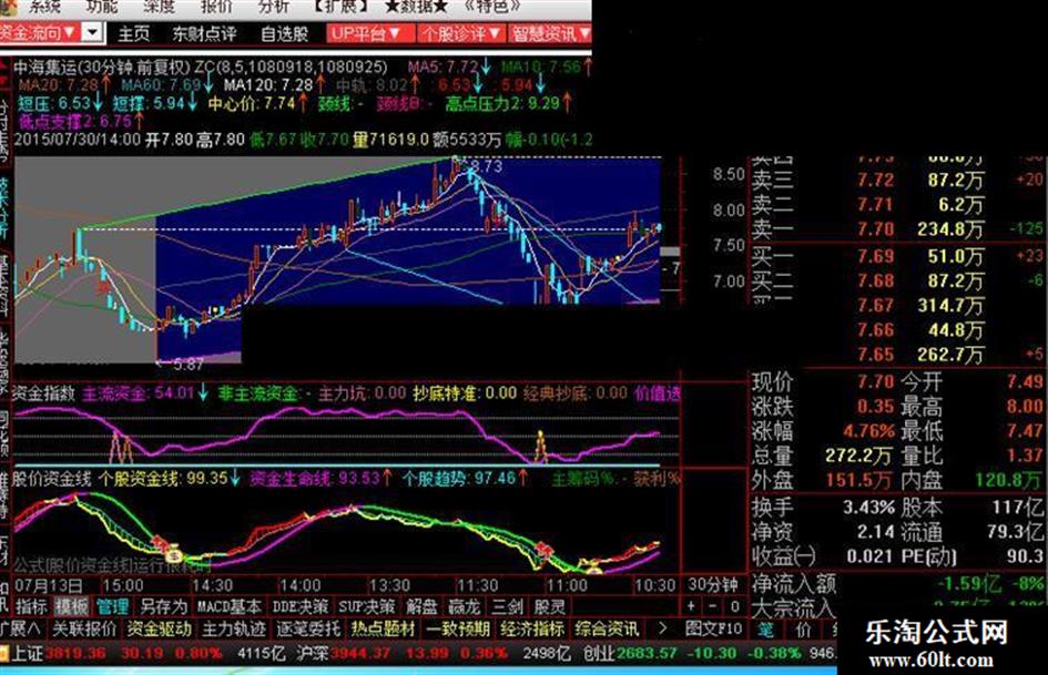 个股趋势A:=EXPMEMA(个股资金线,1),COLORCYAN,LINETHICK1;