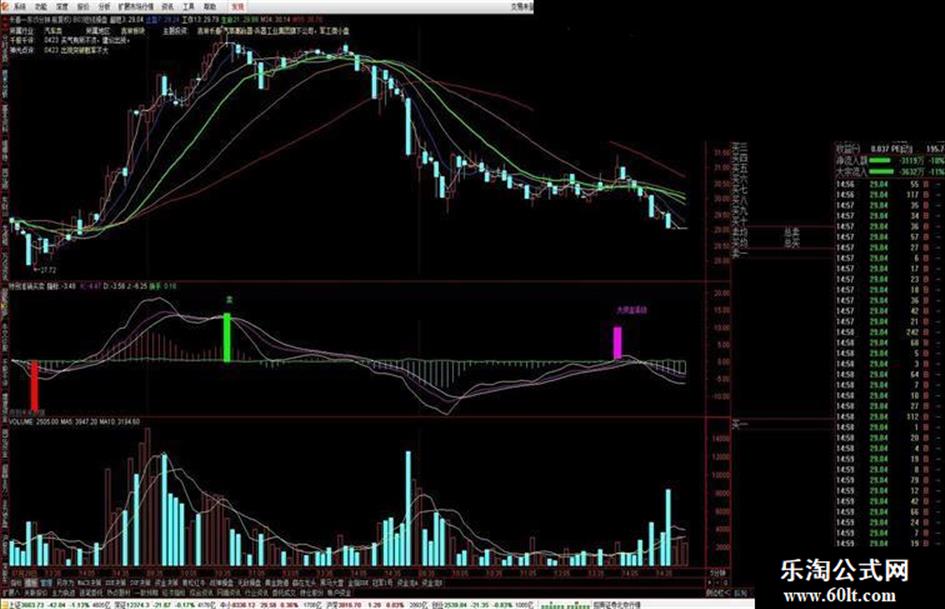 短线逃顶保盈指标,K线分析图,副图。常用于短线或超短线,用于5分钟K线、15分钟K线、30分钟K线效果更好。绿柱“卖”出现时,卖出止盈;"红柱"出现时,买入。“粉红柱”出现,表示有大资金在买入。“跑的快,好世界”!