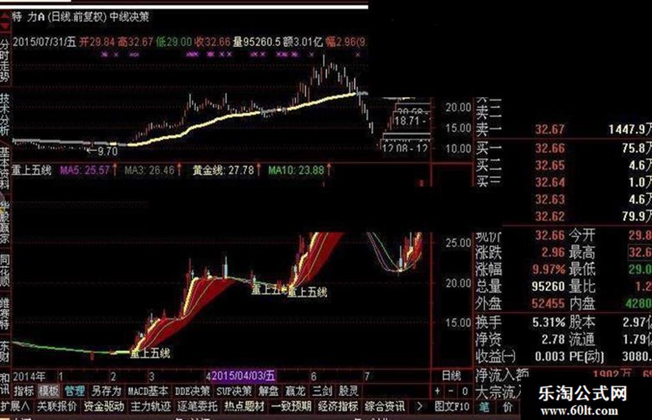 DRAWTEXT(CROSS(C,HJX) AND CROSS(C,MA5) AND CROSS(C,M20),L,'重上五线'),COLORYELLOW;