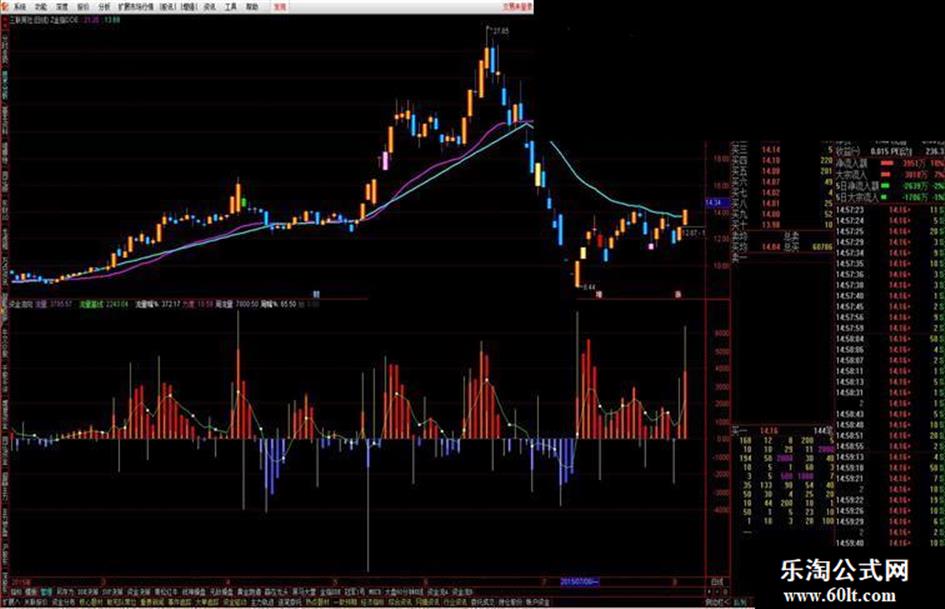 流量幅%:IF(((LLJX > 0) AND (ZJLL < 0)),ABS(QZJJ),IF((((LLJX<0) AND (ZJLL<0)) AND (LLJX<ZJLL)),(0-QZJJ),QZJJ)),COLORLIGRAY,NODRAW;