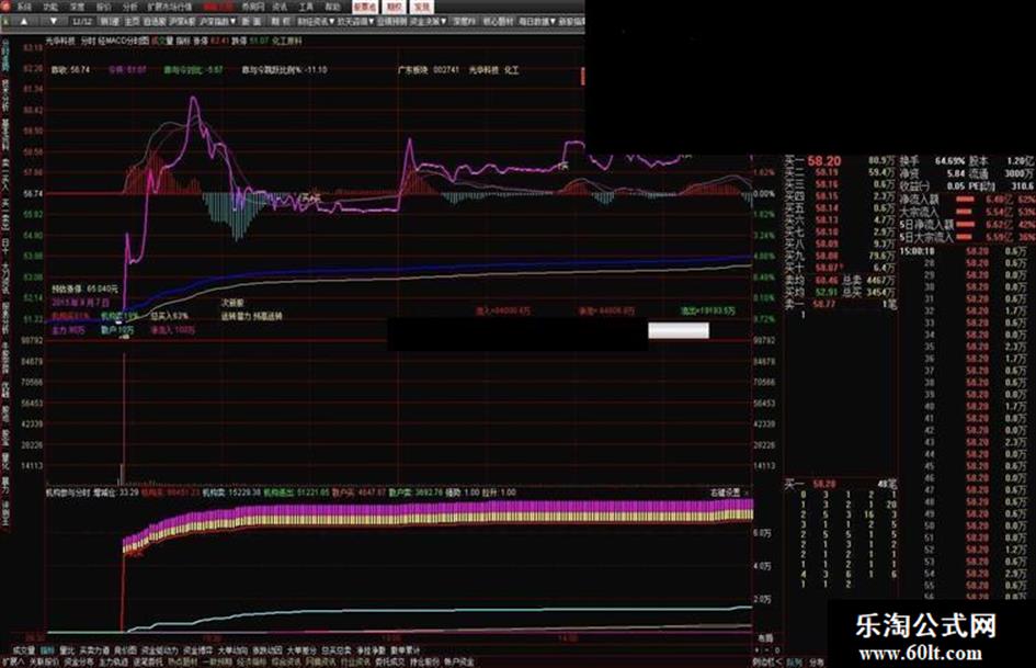 来论坛好长时间了,今日心情不错与大家分享一个我自己修改的分时指标,带今日资金流入流出净比例,以及机构购买比例,和内外盘比例!