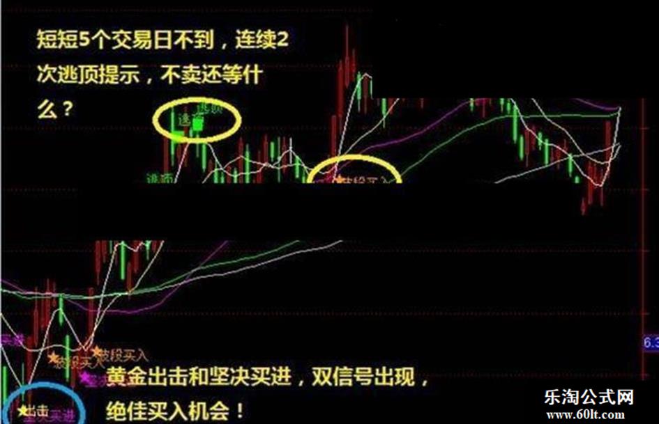 第二部分是该指标的灵魂所在,也是为什么评为抄底逃顶第一指标的原因,内设5种提示信号,分别为4个买入和1个卖出,根据强度和推荐程度,排序依次为---低吸<波段买入<坚决买进<出击,下次出现机会的时间,你还不知道什么时候买吗?逃顶信号更是帮助在08年成功逃离大牛市,你需要做的就是轻点鼠标,微微一笑,与被套说拜拜!
