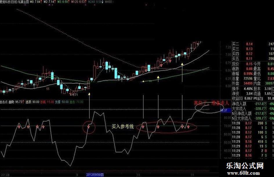 说明:此指标为短线操作公式参考;出信号后可以考虑买进,切忌勿贪!第二日冲高出局即可,严格纪律,成功率80%可以保证!