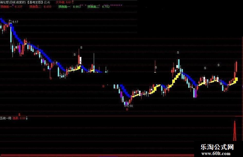 声明:本选股指标是根据唐能通老师的“五线顺上第一阳坚决买进战法”写出来的,俺不知道是否有人发过同样的指标,如有雷同,纯属无心。