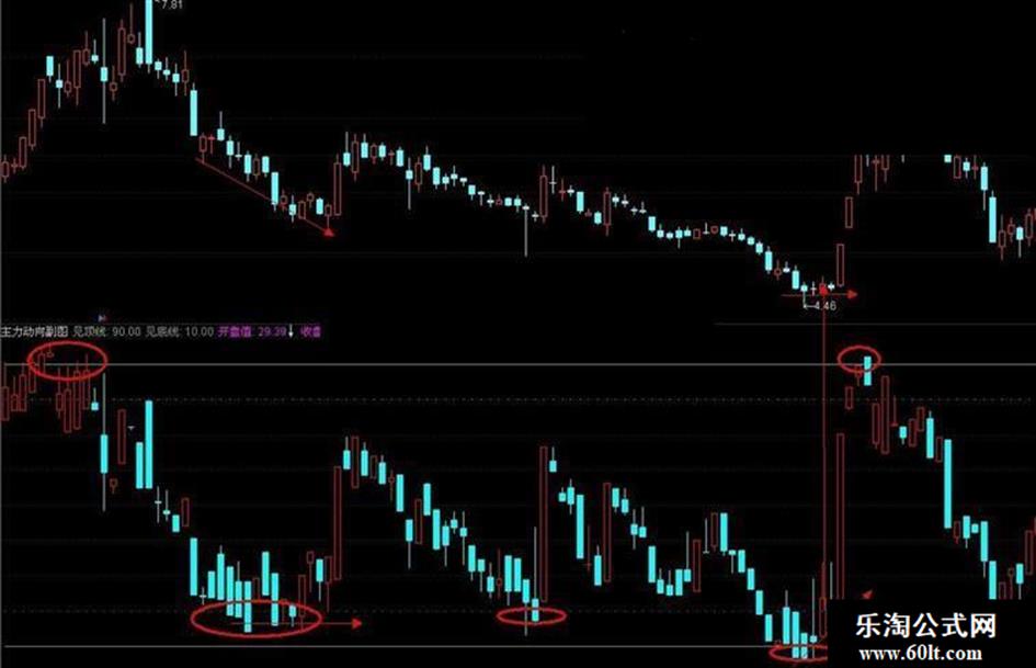 STICKLINE(收盘值<开盘值,最低值,收盘值,0,0),COLORFFFF00;