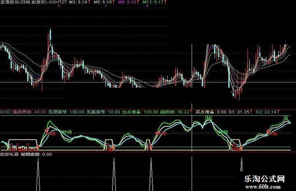 买点准备:IF(趋势线<=10,30,0),LINETHICK2,COLORYELLOW;