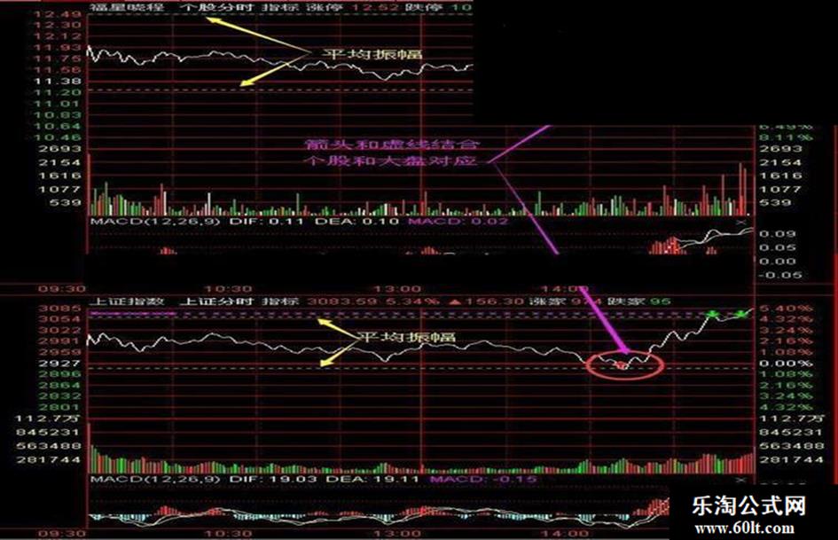 附件中指标有三个,一个是引用的,不需要显示的,另外二个一个是个股,一个是上证,用途是每日做T用的,上下二条虚线是30天的平均振幅作为当天的参考。 红绿箭头会漂移,作辅助观察用。做日内T时同时观察个股和上证