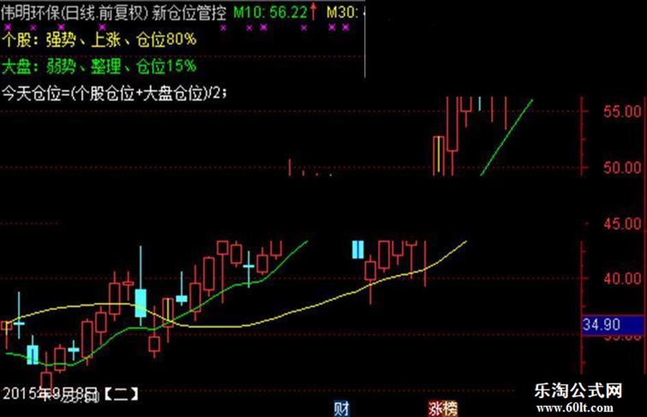 3、总仓位计算指标是本指标一大亮点、它将大盘的影响力进行量化了处理、