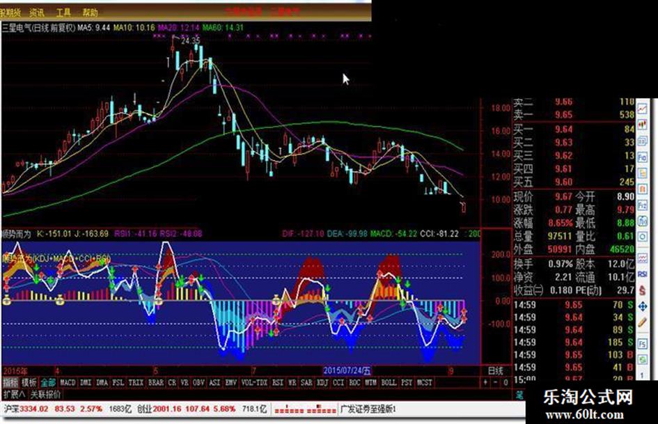 前段时间发现一个将几个经典指标组合在一起的指标,感觉很好,但自己只使用通达信用不了,所以费了很大劲儿终于改成了通达信的,不敢独享,大家分享。