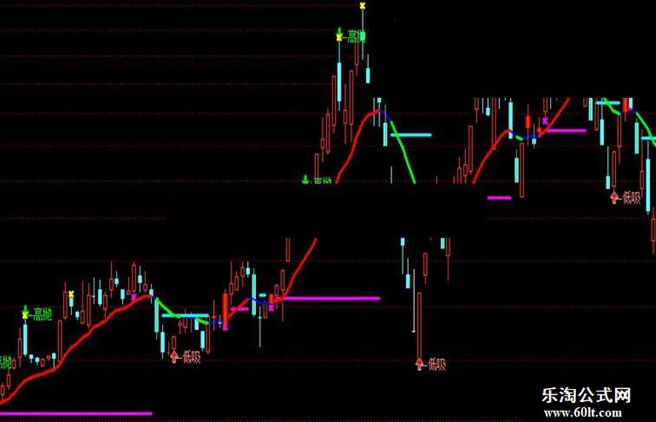 DRAWTEXT(CROSS(散户,庄家) AND 散户<30,L-0.05,'←低吸'),COLORLIRED;