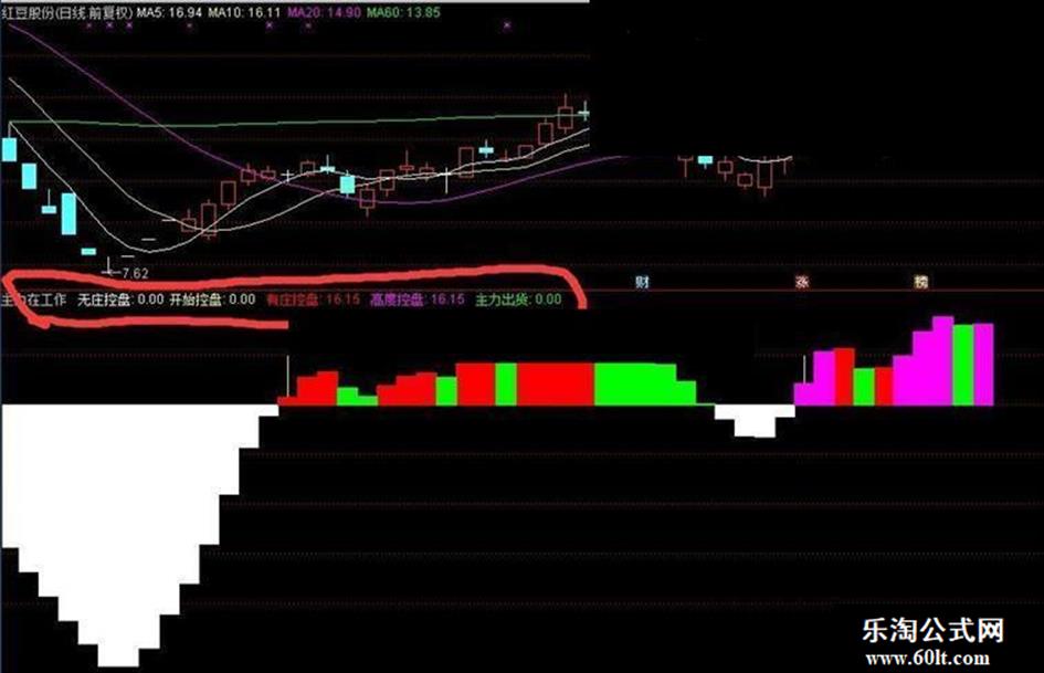 有庄控盘:IF(控盘>REF(控盘,1) AND 控盘>0,控盘,0),STICK,COLORRED;