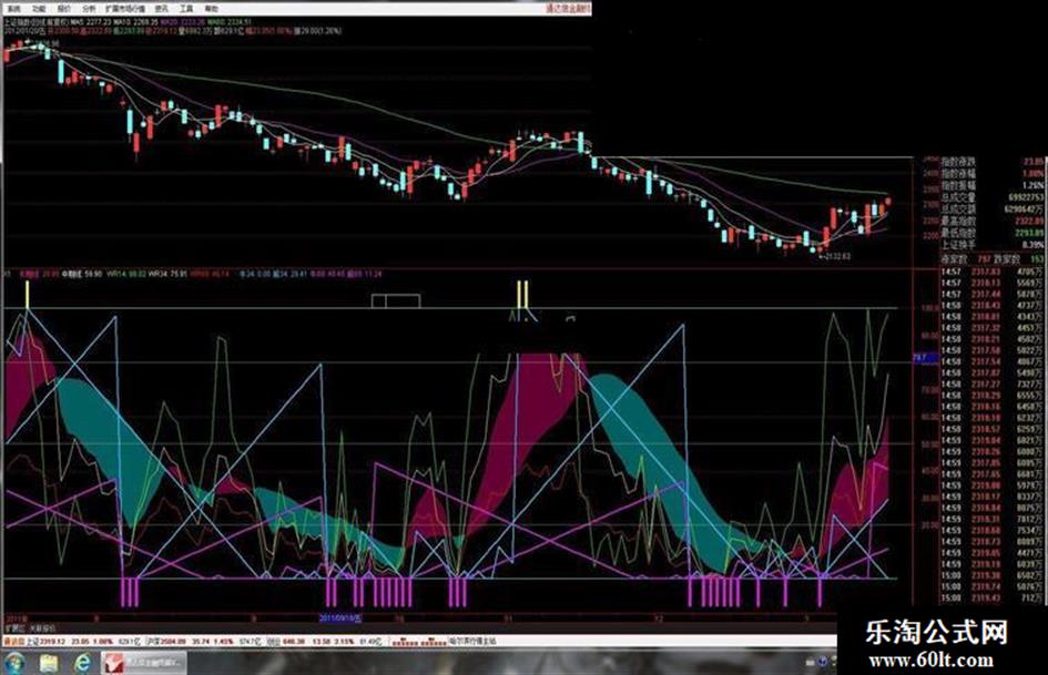 股票洗盘时,绿线(WR14)在下,红线在上,黄线居中;洗盘最凶时,绿线下穿中线下触底线,红线仍然在中线上;一旦绿线回升到中线,就可以大胆介入。