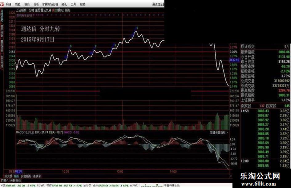 开始正题,前阵子徐小明老师(我很崇拜)整了一个分时九转,搞火了飞狐,突然来了兴趣,就想在通达信上看看能不能实现,倒腾了几天,果真实现了,不多说,规矩我懂,上图。