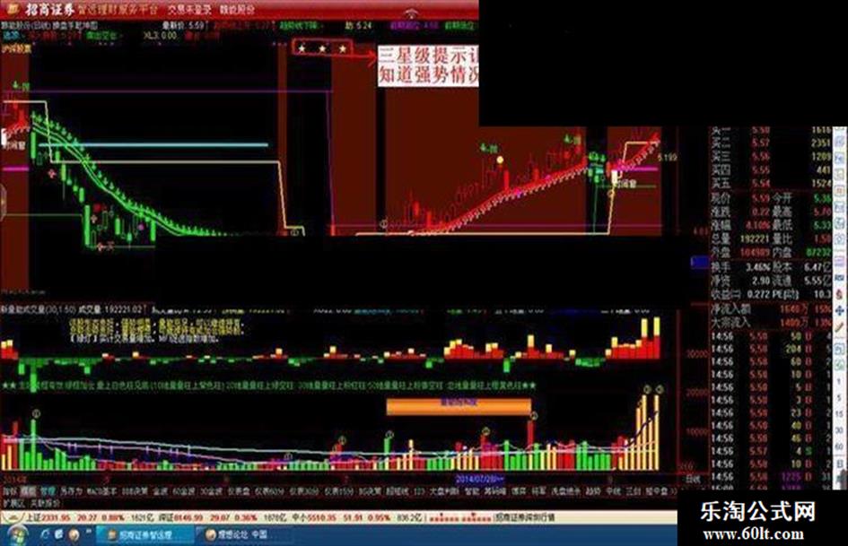 趋势线上升:IF(HS,趋势线,DRAWNULL),LINETHICK2,COLORRED;