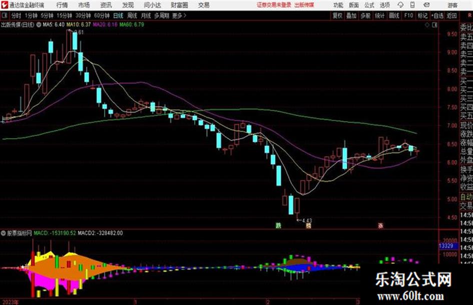 指标千万条,其实最后还是体现在价上。价格才是终极目标。但凡牛股妖股必然体现为K线踩上20日,60日,250日均线,主升则更加,如果以250日均线或者60日均线向上到5日均线甚至3日最高价的均线(ma(h,3))求面积,则主升就是这一面积逐步放大的过程,那么这一面积怎么表示,想到了MACD指标,MACD指标其实就是两条线之间的距离,如果采取画图手段来体现这种面积,结合量在价先的原理,则可以将主升浪夸张式地呈现在大家面前,看图: