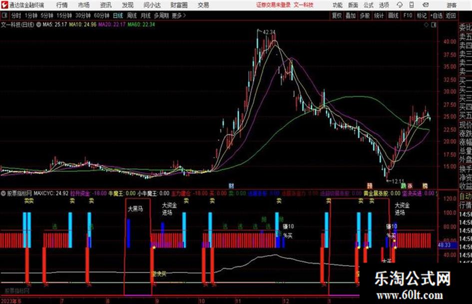 大黑马:=CROSS(趋势线3,0) AND (黑马线< 40);