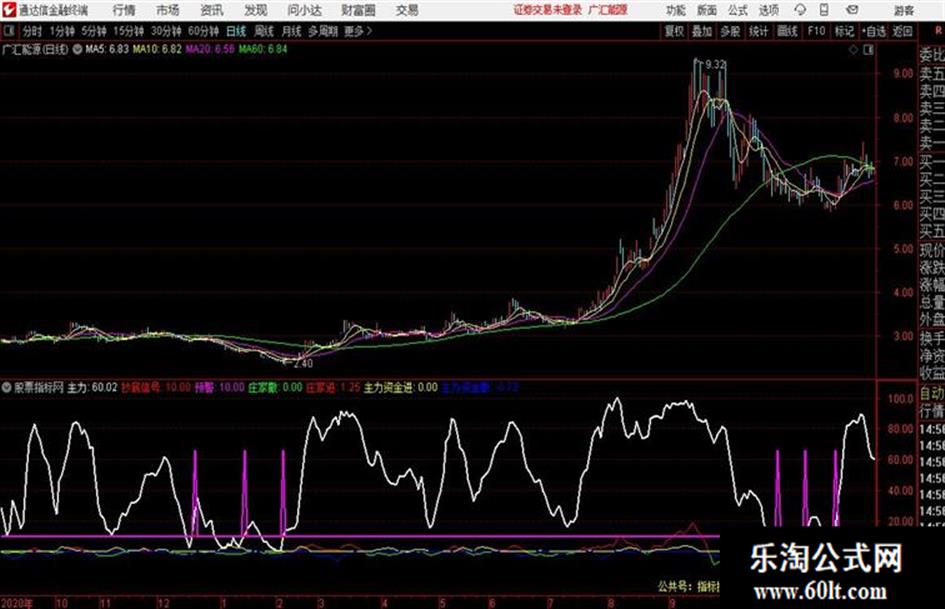 预警: IF(CROSS(主力,抄底信号),66,10), ,LINETHICK2,COLORFF00FF;