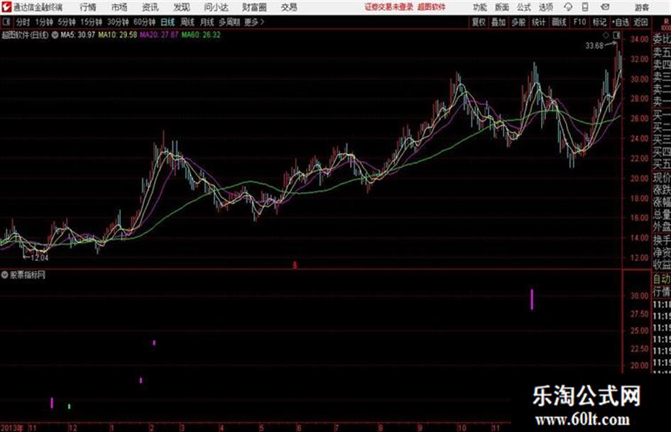 STICKLINE((C>=ZTPRICE(REF(C,1),BK) AND C=H),C,O,2.7,0),COLORFF00FF;
