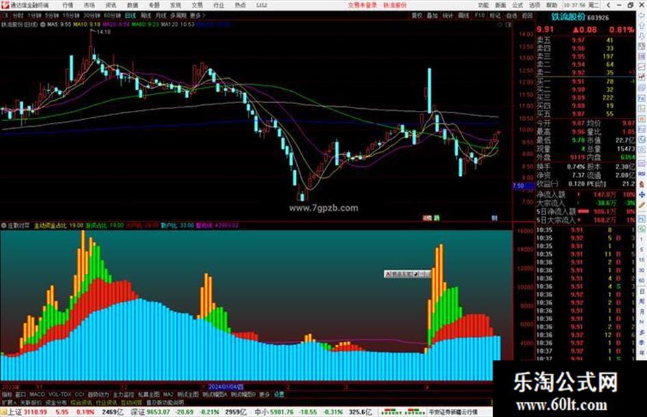 主动资金占比:ROUND(((主力 / (((主力 + 游资) + 大户) + 散户)) * 100)),NODRAW,COLOR00FFFF;
