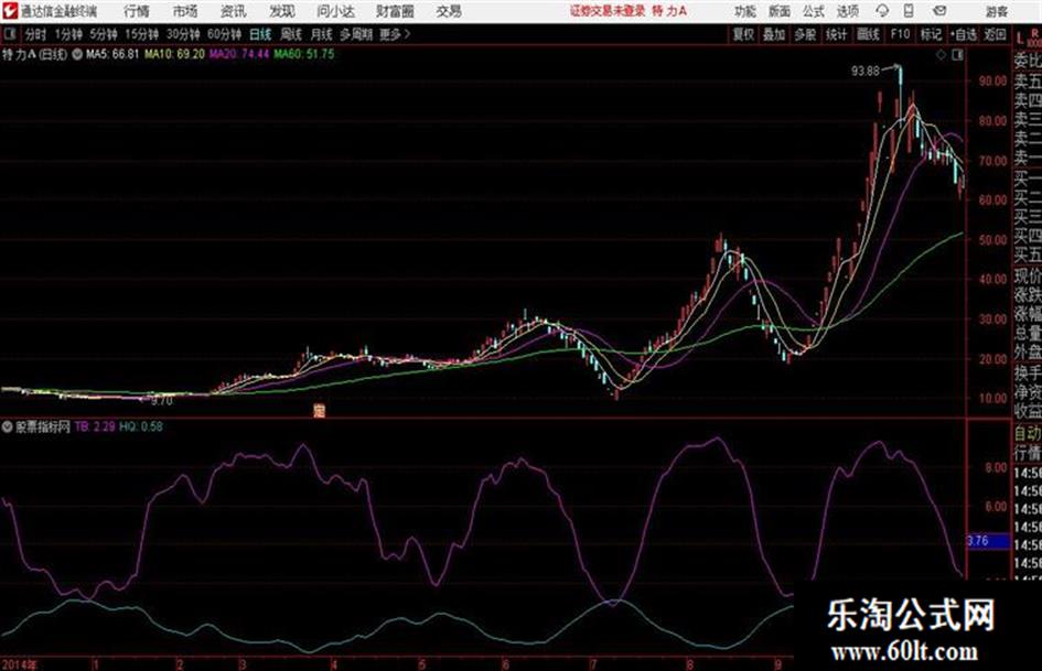 TA1:SUM(MAX(CLOSE-AX,0),14)/SUM(ABS(CLOSE-AX),14)*100,COLORYELLOW;