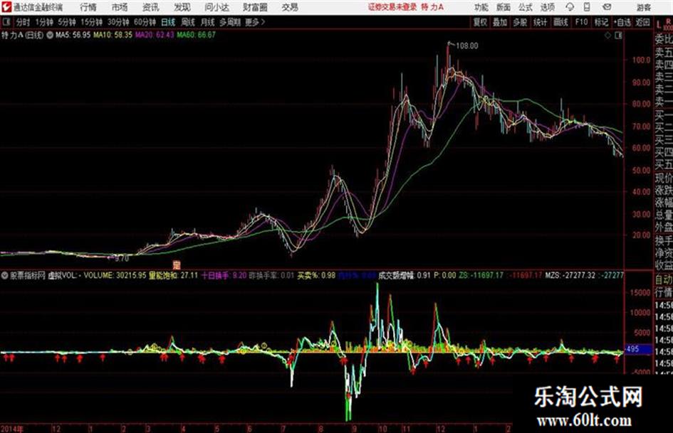 MA10赋值:成交量(手)的10日简单移动平均*XZ,线宽为2