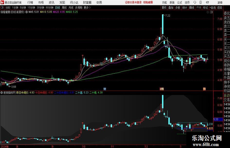 昨日中间价:IF(BARSLAST(CURRBARSCOUNT-1=CONST(2))>=1 AND CLOSE>1,CONST(REF((HIGH+LOW)/2,1)),DRAWNULL),COLORYELLOW;