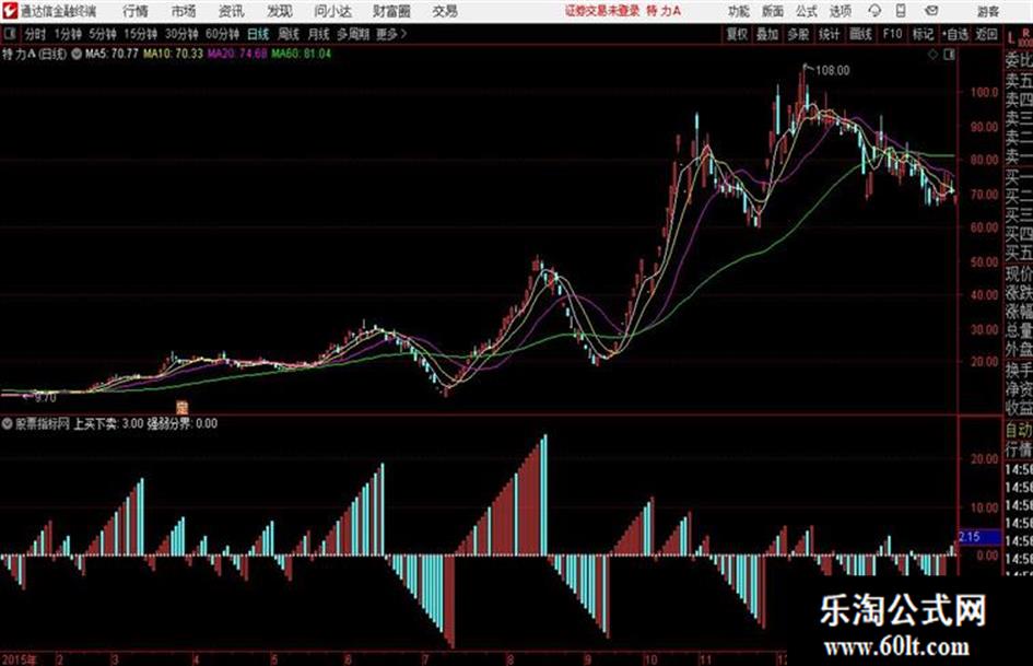 2、卖点:当“强弱分界”线下方出现第一根缘色柱线时为止赢的卖点。