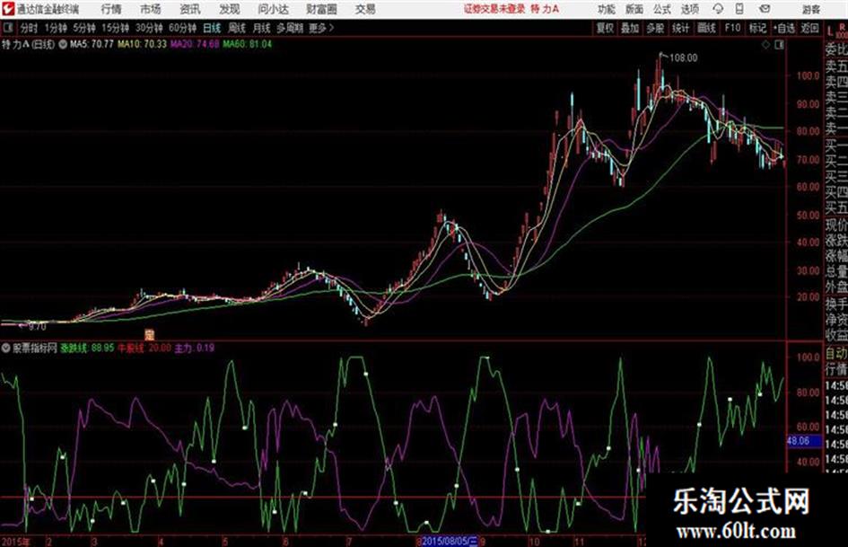 绝对的寻找牛股的好公式!:快涨。只要满足主力线上穿绿色线,并站上20值线保持不下来,牛股就基本成型了,选择上涨势道较好的放量股,收益一定颇丰!
