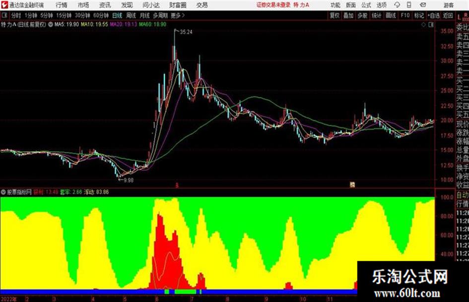 套牢: ( 100.000 - MA(A02,变量00)),colorgreen;