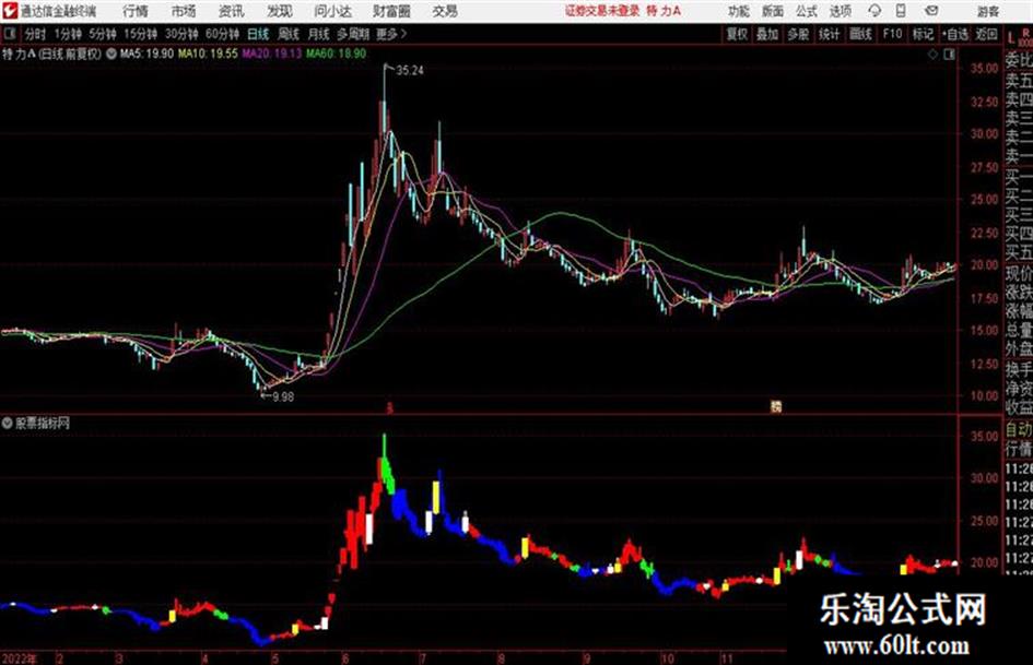 STICKLINE(买进条件,h,l,0.5,1),colorwhite,linethick2;STICKLINE(买进条件,o,c,8,0),colorwhite,linethick2;