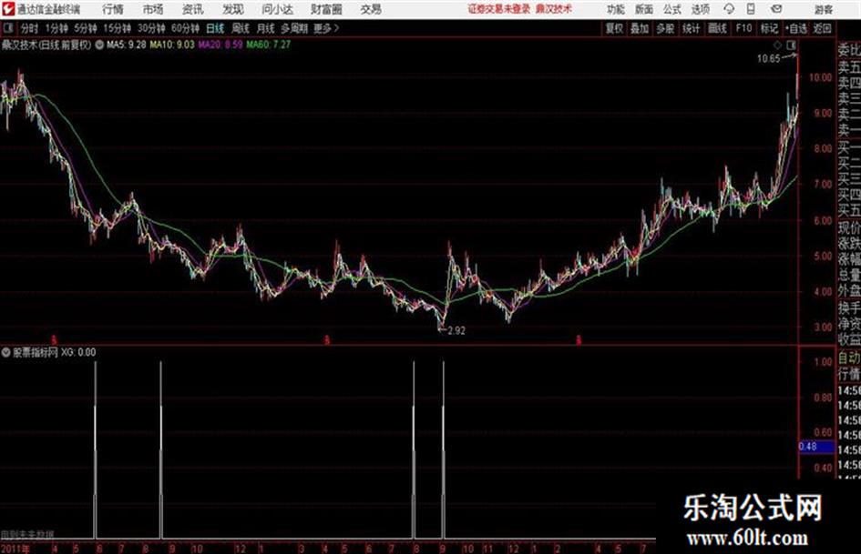 VAR41:=(CLOSE>REF(CLOSE,1) AND CLOSE>REF(CLOSE,2)); VARK:=(CLOSE<REF(CLOSE,1) AND CLOSE<REF(CLOSE,2)); VARL:=(REF(VARK,1) AND CLOSE>=REF(CLOSE,1) AND CLOSE<=REF(CLOSE,2)); VARX:=(REF(VARL,1) AND CLOSE<=REF(CLOSE,1) AND CLOSE>=REF(CLOSE,2)); VAR30:=(REF(VARX,1) AND CLOSE>=REF(CLOSE,1) AND CLOSE<=REF(CLOSE,2)); VAR31:=(REF(VAR30,1) AND CLOSE<=REF(CLOSE,1) AND CLOSE>=REF(CLOSE,2)); VAR32:=(REF(VAR31,1) AND CLOSE>=REF(CLOSE,1) AND CLOSE<=REF(CLOSE,2)); VAR33:=(REF(VAR32,1) AND CLOSE<=REF(CLOSE,1) AND CLOSE>=REF(CLOSE,2)); VAR34:=(REF(VAR33,1) AND CLOSE>=REF(CLOSE,1) AND CLOSE<=REF(CLOSE,2)); VAR35:=(REF(VAR34,1) AND CLOSE<=REF(CLOSE,1) AND CLOSE>=REF(CLOSE,2)); VAR36:=(REF(VAR35,1) AND CLOSE>=REF(CLOSE,1) AND CLOSE<=REF(CLOSE,2)); VAR37:=(REF(VAR36,1) AND CLOSE<=REF(CLOSE,1) AND CLOSE>=REF(CLOSE,2)); VAR38:=(REF(VAR37,1) AND CLOSE>=REF(CLOSE,1) AND CLOSE<=REF(CLOSE,2)); VAR39:=REF(VARK OR VARL OR VARX OR VAR30 OR VAR31 OR VAR32 OR VAR33 OR VAR34 OR VAR35 OR VAR36 OR VAR37 OR VAR38,1) AND VAR41; DIFF:=EMA(DCLOSE,12)-EMA(DCLOSE,26);{来自经典副B} DEA:=EMA(DIFF,9),COLORFFFF00; MACD:=(DIFF-DEA)*2; A10:=BARSLAST(REF(CROSS(DIFF,DEA),1)); A11:=BARSLAST(REF(CROSS(DEA,DIFF),1)); 底背离:=REF(CLOSE,A10+1)>CLOSE AND DIFF> REF(DIFF,A10+1) AND CROSS(DIFF,DEA); 顶背离:=REF(CLOSE,A11+1)< CLOSE AND REF(DIFF,A11+1)>DIFF AND CROSS(DEA,DIFF); LC:=REF(C,1),NODRAW; LC2:=REF(C,2),NODRAW; 平底:=LC<LC2&&C>=LC,NODRAW; 收阳:=C>O,NODRAW; XG:平底 AND 收阳 AND 底背离;