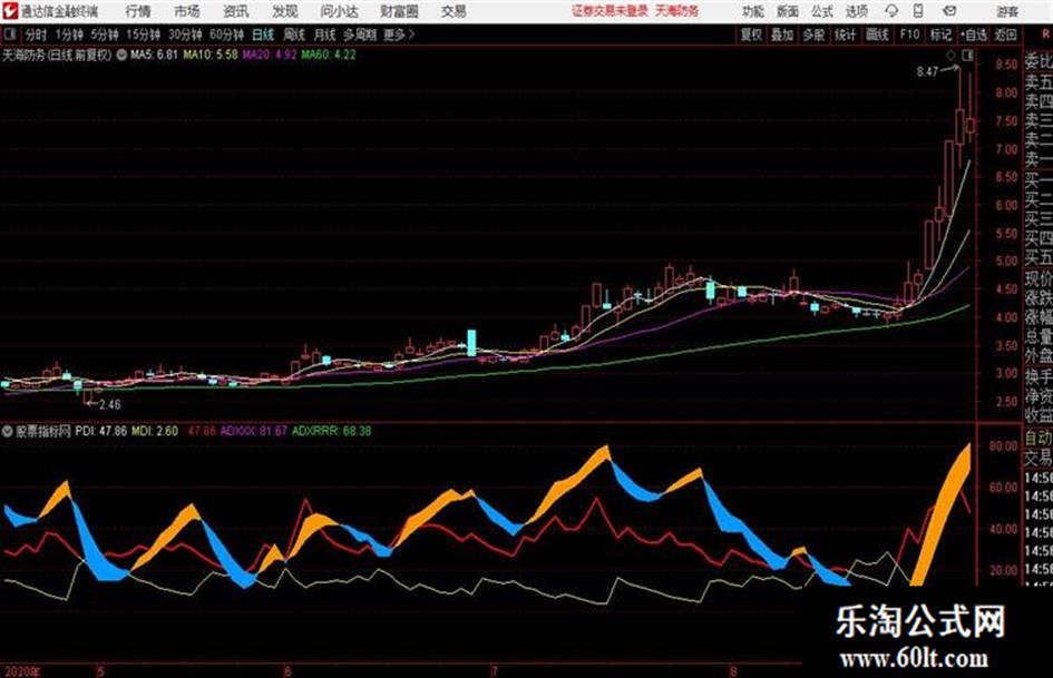 ADX:= EXPMEMA(ABS(MDI-PDI)/(MDI+PDI)*100,MM),COLORMAGENTA, ;