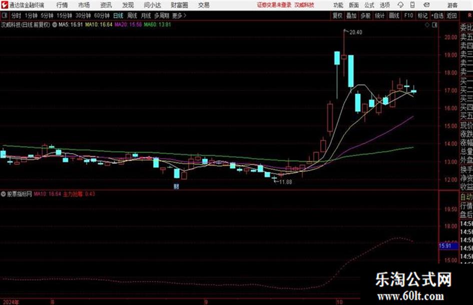 5、指标做的是2个信号都能选出的条件,方便大家提前选出活跃的票加入自选,第二天出现起飞信号+主力抢筹>2则可以直接介入!