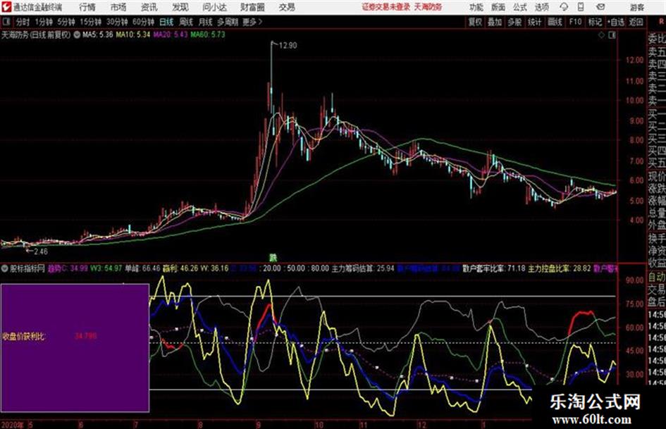 DRAWTEXT_FIX(CURRBARSCOUNT=1,0.01,0.20,0, '主力控盘比率:'),COLORYELLOW;