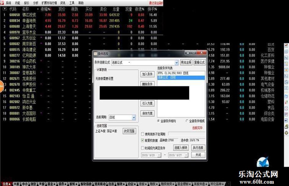 盘后选股建立股票池的源码:(这行别复制,下面的代码放到条件选股用的,放到条件选股下面,千万注意,不是盘中预警用的)