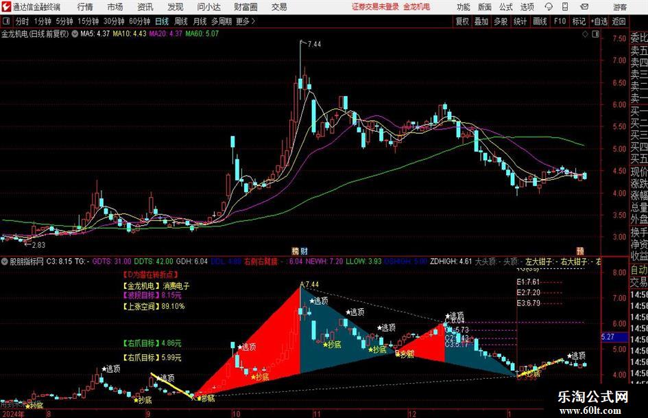 左侧左头部:=IF(GDCS=1,DRAWLINE(ZZ,L,XX2,H,0),DRAWNULL),COLORMAGENTA,LINETHICK3;{前三低对接前二高}