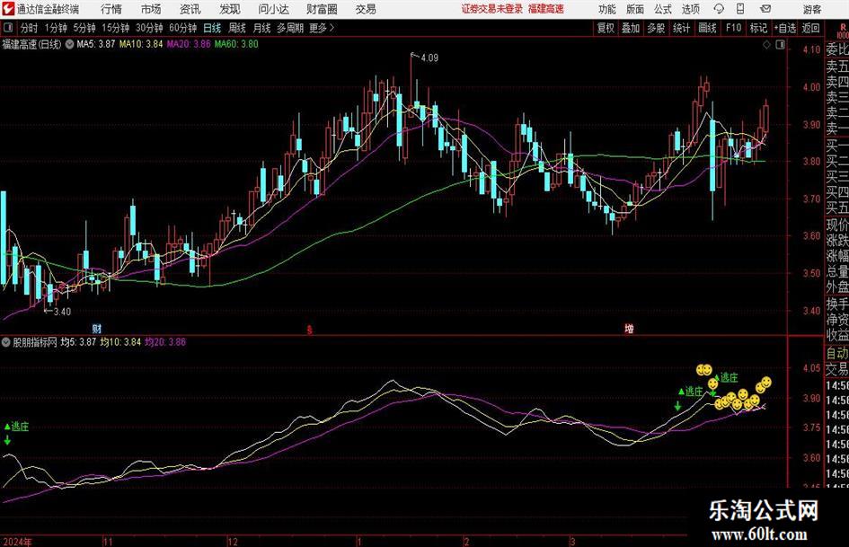 DRAWTEXT(CROSS(84,VAR7),H*1.01,'▲逃庄'),COLORGREEN ;