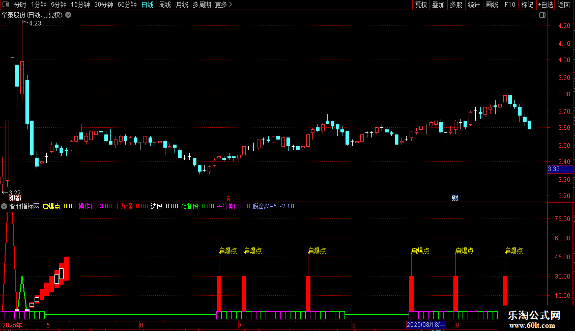 启爆点识别:当综合控盘指标突破50且短期未多次触发时,标记红色柱状信号,提示可能启动行情;