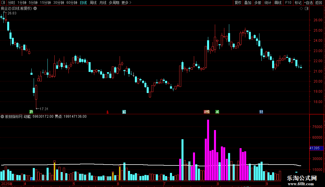 界点:MA(动能,155),DOTLINE,LINETHICK2,COLORWHITE;
