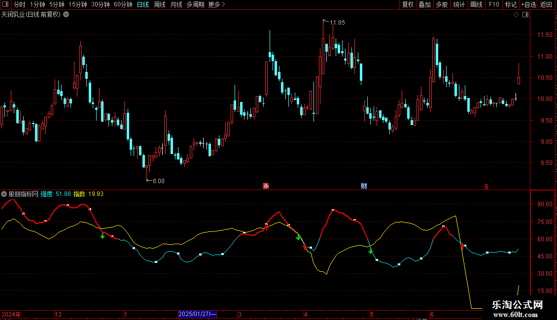 IF(强度>60,强度,DRAWNULL),LINETHICK2,COLORRED;