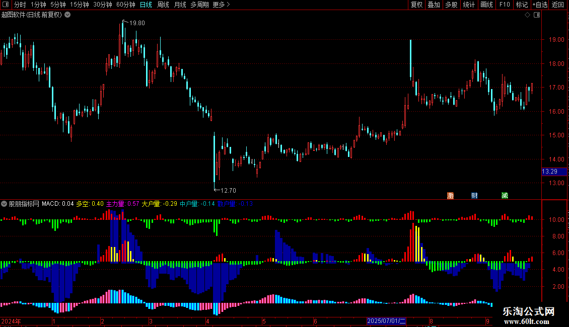 操盘:STICKLINE(主力量>=0 AND 主力量>=REF(主力量,1),5,5+主力量,1.5,0),COLORRED;