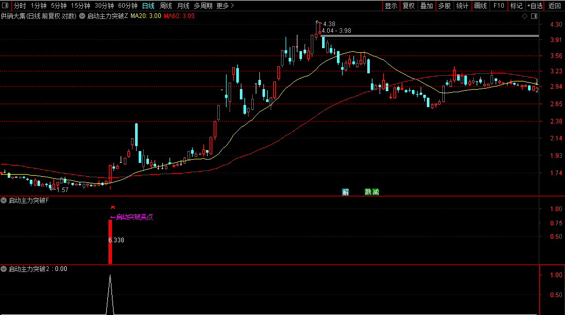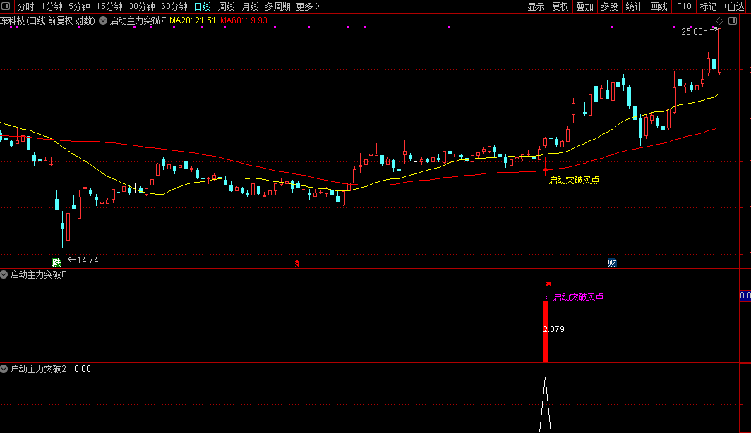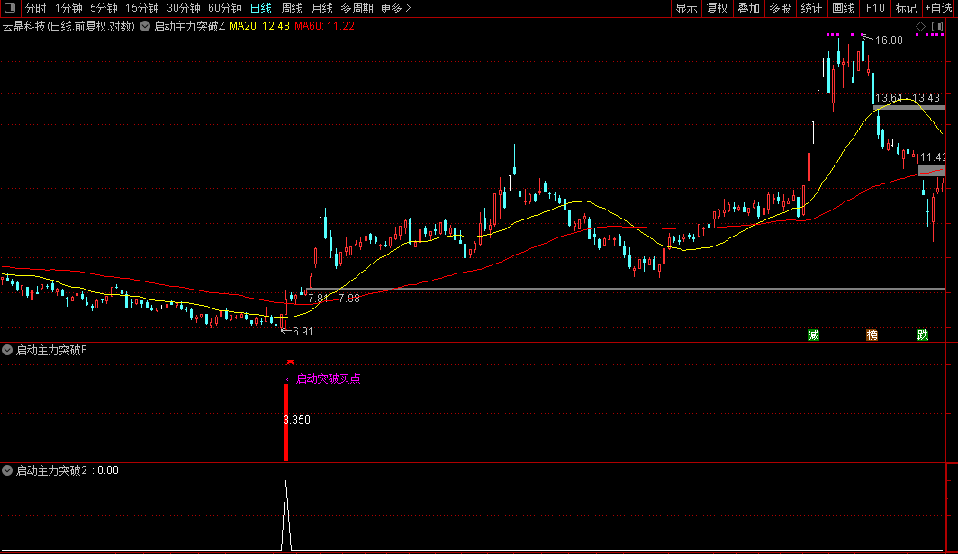 通达信【启动主力突破】主副图/选股指标识别短线强势股初始突破点的买入机会源码